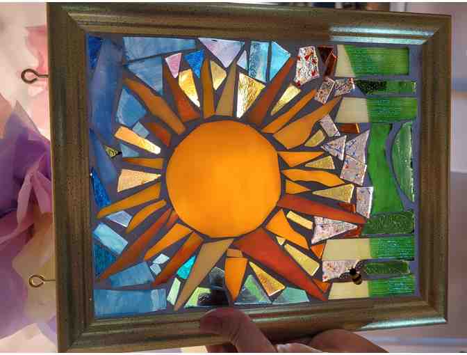 Beautiful handcrafted glass on glass mosaic pieces made with love for the Waldorf auction by local artist. These will look beautiful in your window at home!