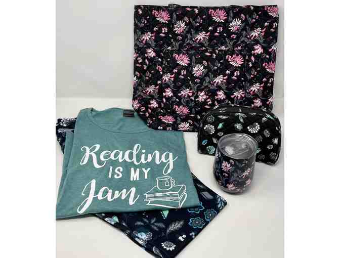 This floral bag is filled with fun clothing and accessories from Scholastic!