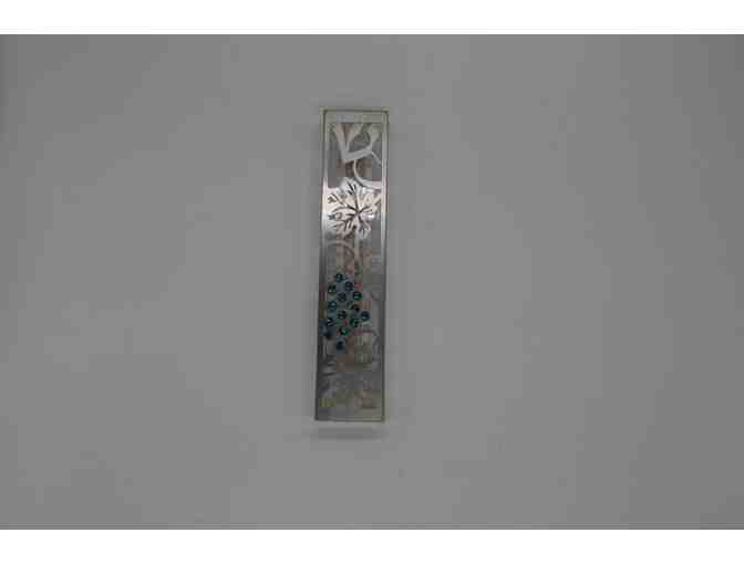 Acrylic Mezuzah w/ Stainless Steel Grapevine Cutout and Swarovski Crystals by Dorit Judaica.