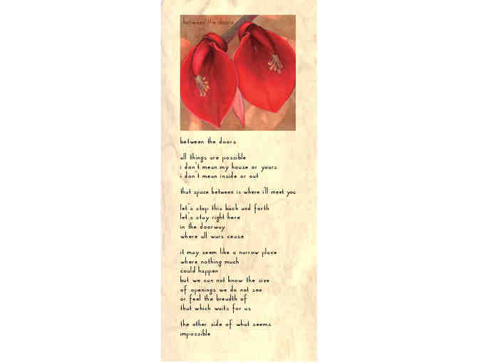 Between the Doors by Susan Windle, Mulungu by Alana Lea, ©2005 by Susan Windle and Alana Lea. All rights reserved. Size: 4 1/12 x 10 1/2, Matt Size: 9 1/2 x 16. Dimensions refer to image size, including text, rounded to the nearest 1/2 inch, and to matte size, also rounded to the nearest 1/2 inch.