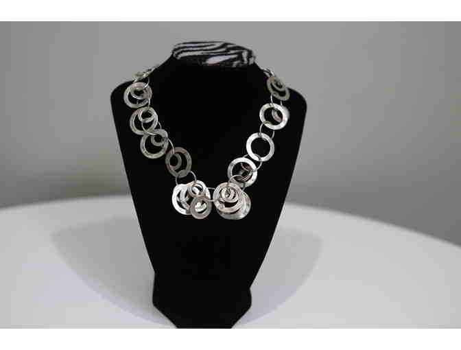 Heavy sterling silver Angel Ortiz 18" neclklace. This necklace is created with many sterling silver circles making it a timeless design that will always be fashionable!