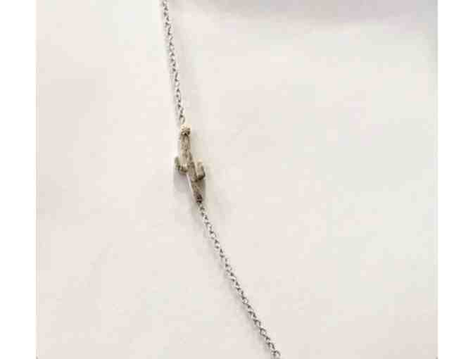 A sterling silver mini-saguaro necklace on an 18.5" cable chain.