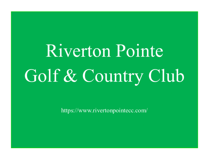 Certificate is good for one (1) round of golf for four (4) guests at Riverton Pointe Golf & Country Club. Certificate expires May 31, 2023; tee times valid after 11:00 a.m.. Certificate is not valid during the months of March, April, and October; reservations necessary.