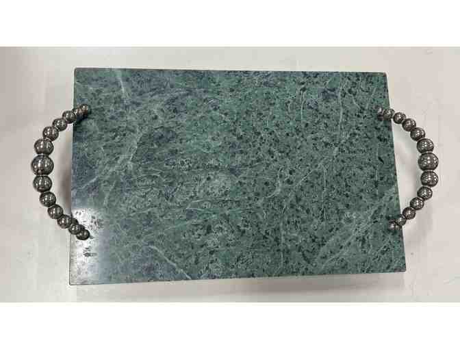 This measures approximately 12" x 7.5". There is some tarnishing at the silverplate.