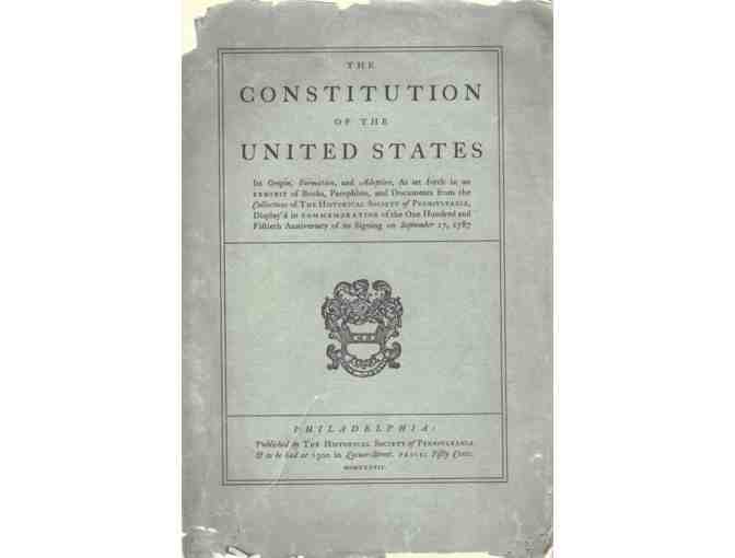 The Constitution of the United States published by The Historical Society of Pennsylvania, 1937, 35 page booklet. For the aspiring Constitutional scholar. A list of rare resources going back to documents leading up to our Constitution. Interesting preface by Julian Boyd, Librarian.