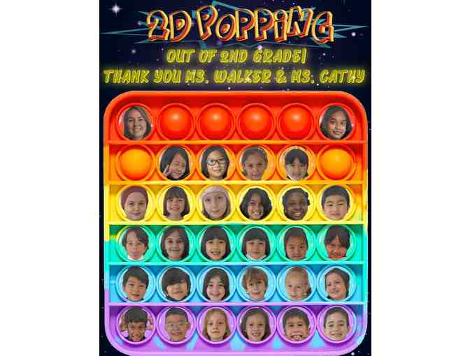500-piece original puzzle with photos of 2D students, Ms. Walker, and Ms. Cathy. This is an original momento of our amazing 2nd grade year. Designed by Sean Hu!