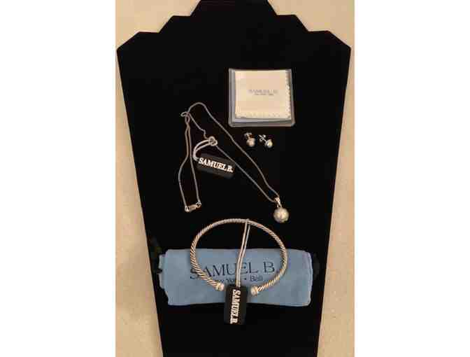a trio of sterling silver jewelry featuring diminutive pearls.