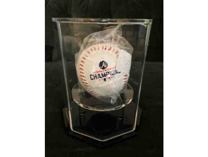 "Celebrate your Atlanta Braves winning the Fall Classic with this 2021 World Series Champions Fanatics Exclusive Rawlings Replica Signature Baseball. It features facsimile signatures of Freddie Freeman, Dansby Swanson, Joc Pederson and William Contreras, making it an instant centerpiece for your Atlanta Braves fan cave."
