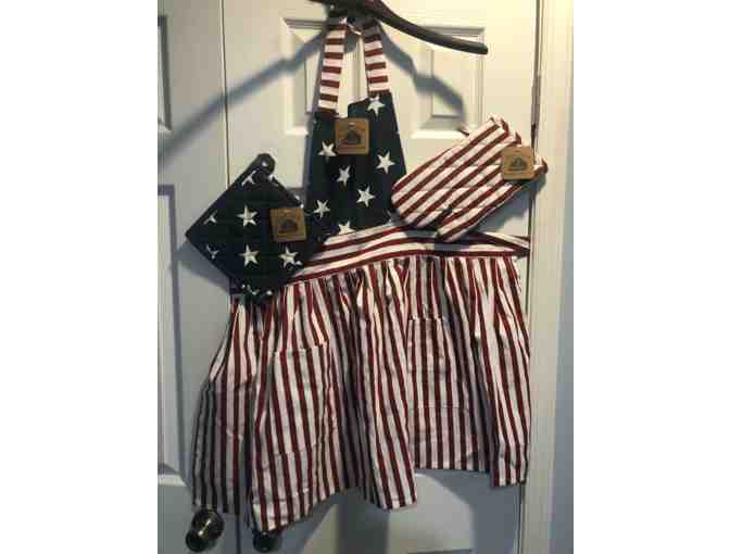 Entertain in style this Independence Day and every day, when you sport this patriotic apron made by Beehive Linens and donated by Lisa South! It even has pockets!