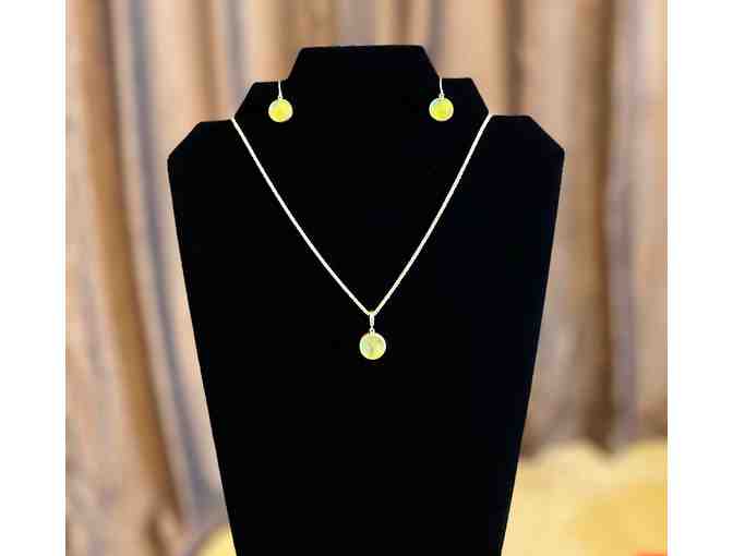 Sterling silver oro verde citrine with mother of pearl 12 mm cabochon pendant on a sterling sliver 16" margarita chain.