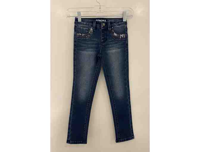 SONOMA Denim Jegging with Sequin Pocket Rim Design - Girls Size 6