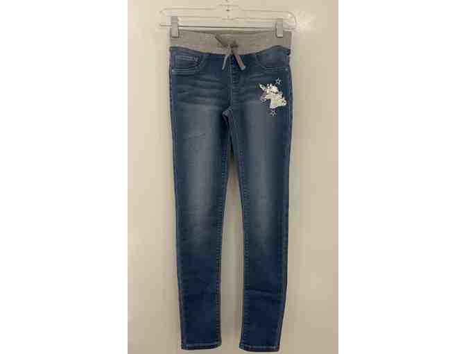 SQZ Girls Size 10 denim pants with unicorn sequin.