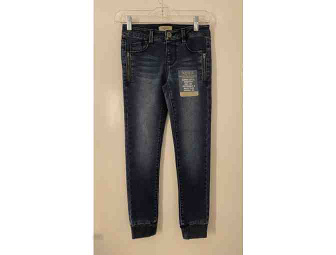 SQZ super soft and stretchy dark blue denim pants in Size 10.