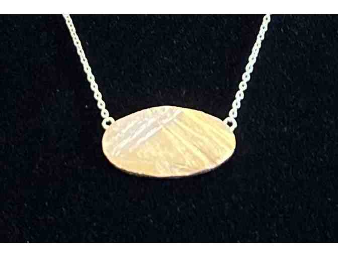 A 17" sterling silver cable chain necklace with a an antique bronze atmosphere pendant and SR clasp, handmade by a former BASIS parent.