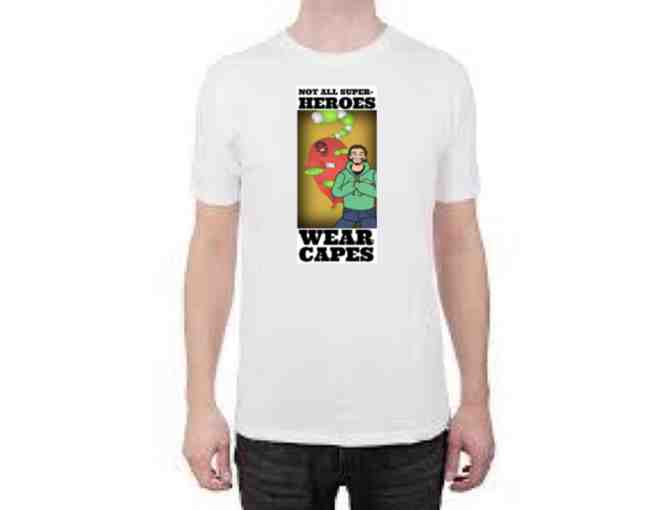 One of the collectible shirts from "The Academic Avengers," depicting and signed by Capsaicin Man (aka Mr. Pepper) himself. Available in any size, this shirt is a perfect gift for all ages.