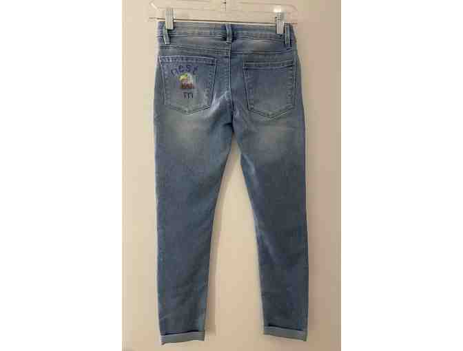 SQZ Light Blue Stretchy Denim Pants with NEST+m Logo & Eagle - Girls Size 10