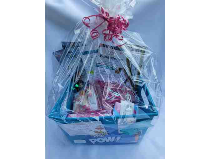 Basket includes: Kaleideum Museum Family Pass, Children’s Museum Family Pass, Kersey Valley Corn Maze 3 pass, Safari Nation 3 pass, Two Left Feet Unicorn socks, Unstable Unicorn game, ½ dozen Duck Donuts and a small stuffed Unicorn