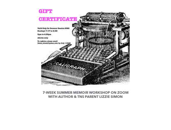 $450 7-Week Memoir Writing Class with author Lizzie Simon (TNS parent)