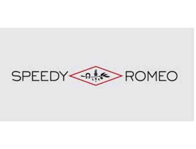 Situated in a 100-year old bar, turned liquor store, then auto parts shop, Speedy Romeo is cooking with fire. All our dishes are prepared in a hardwood-fired Italian pizza oven, and on a wood grill from Mesquite, Texas.