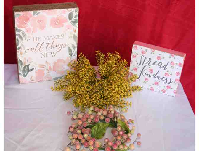 This collection contains Two Signs - "He Makes All Things New" and "Spread Kindness". Also included are two candle Rings. All things are new.