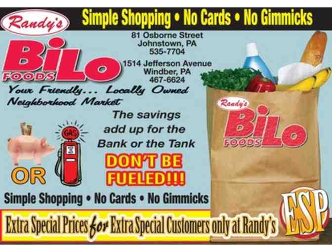 A ($50) Fifty Dollar gift card for Randy's Bi-Lo, "Your Friendly Neighborhood Market". Good at only the Osborne St., Johnstown, Pennsylvania location.