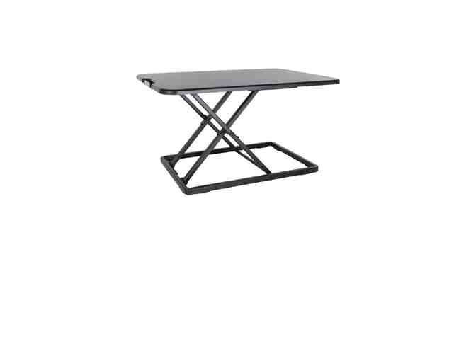 The Conquer Compact Standing Desk creates a healthy workspace allowing you to balance between sitting down and standing up. This space-saving height adjustable standing desk features a small footprint and will fit nearly anywhere you need a flexible workstation. The ample desktop is 26.5 inches wide and 18.75 inches deep, and it will raise and lower vertically any height from 1.75 inches up to 16 inches. The desk's base footprint measures 22.75 inches x 15 inches. Perfect for a laptop, the springs on the desk converter glides easily to the desired height, just lock it in place! The weight limit for the desk is 17.6 lbs. Sturdy, yet easy to move, this computer monitor riser looks sleek and will match any office decor.