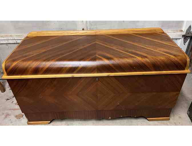 This Lane Cedar Chest with original labeling still intake is 47" long, 19" wide, and 24" high.