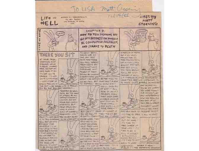 1985 Matt Groening Life in Hell Autographed Comic Stirp . Comes with certificate of authenticity.