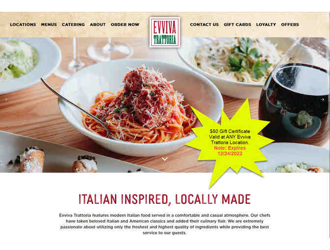 $50 Gift Certificate to any of Evviva Trattoria Locations.