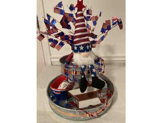 Celebrate 4th of July by serving your favorite treats on the two-tier metal serving dish complete with candy and holiday decor!
