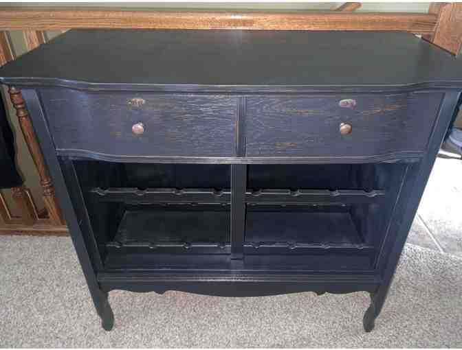 Repurposed from a vintage buffet by expert woodworker and NubAbility Coach dad, this 2 drawer antique style wine storage cabinet holds up to 18 bottles of your favorite wines. (More photos to come!) Dimensions are as follows: