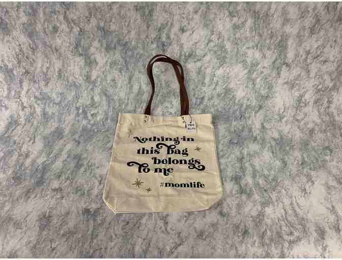 Enjoy this #MomLife cotton tote bag with faux leather handle!
