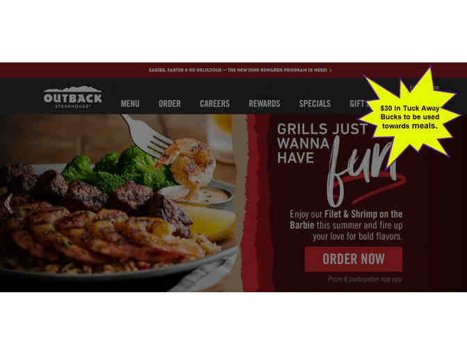 Outback Steakhouse - Seekonk, MA location has donated $30 in Tuck Away Bucks to be used in the Seekonk, MA location only.