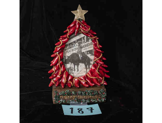 This frame is a Christmas tree that is composed of red chili peppers, complete with a star on top. It has an oval 4" x 6" opening.
