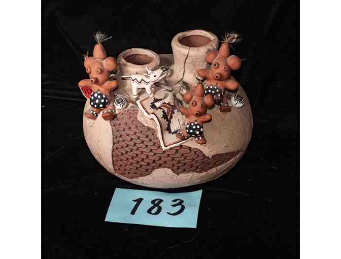 Southwest Clay Pot With Mudhead Figures