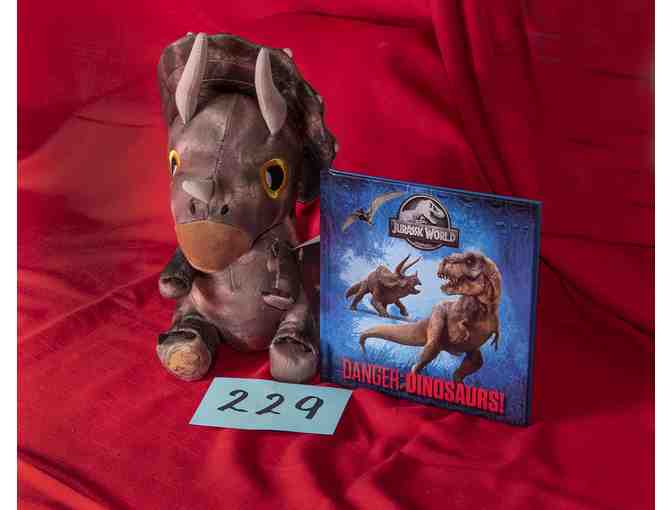This dinosaur play set includes a triceratops plush animal and the book, Jurassic World: Danger Dinosaurs!