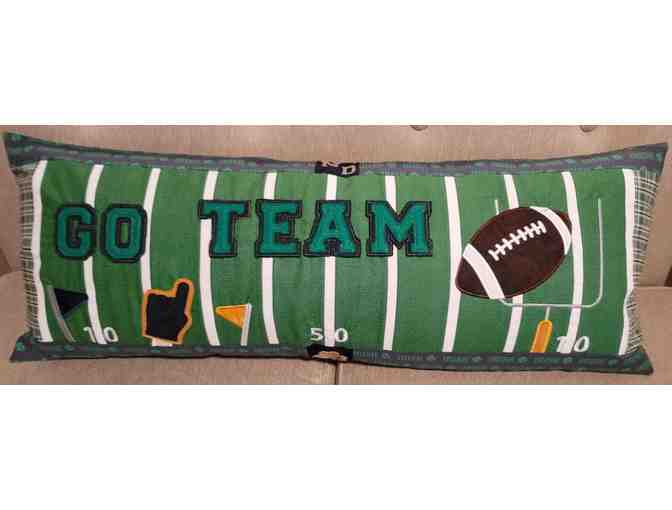 Show your ND support during football season by displaying this vintage-inspired, hand-made, machine embroidered 16" x 36" bench pillow, custom made with high quality fabrics.