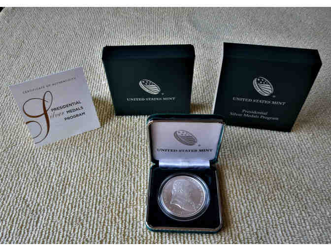 The United States Mint certifies that this is a genuine Presidential Silver Medal, minted by the Department of the Treasury, United States Mint.