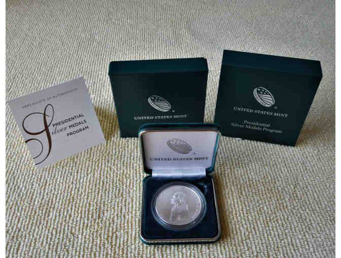 The United States Mint certifies that this is a genuine Presidential Silver Medal, minted by the Department of the Treasury, United States Mint.