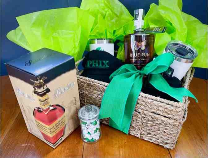 Call a friend and relax on your deck while sharing these bottles of Blanton's Bourbon and Blue Run Bourbon Whiskey. These 2 Yeti brands mugs will keep them chilled. Includes 2 hats and candy from our friends at Aphix.