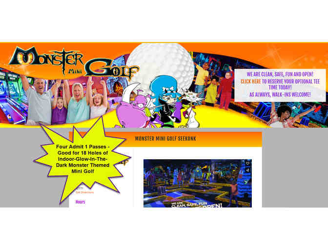 Monster Mini Golf has donated four passes - each good for 18 Holes of Indoor Glow-In-The-Dark Monster Themed Mini Golf. Valid at any Monster Mini Golf location.