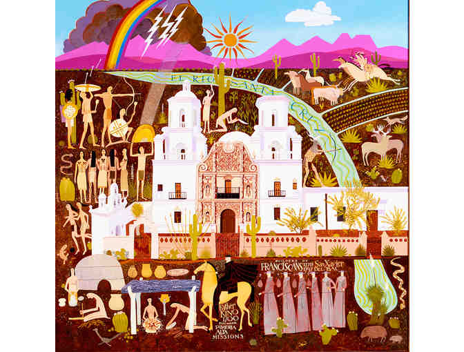 This iconic narratative image of San Xavier Mission is by well-known Southwestern artist Allan Mardon.