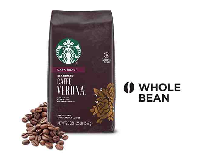 Starbucks 16 oz Caffe' Verona roasty sweet & dark cocoa whole coffee beans. 100% Arabica coffee.