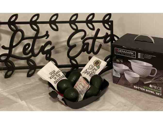 Large black wooden sign "Let's Eat!" (32" x 14") comes with: