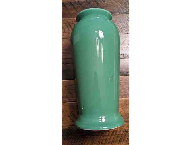 This years custom Fiesta item was introduced in 2002 and discontinued in 2007 the Monarch Vase. The 12 individually numbered vases are glazed in Meadow (2019 new color). Dimensins are 9-1/4" tall x 4-1/4" diameter with 2-1/4" hole in top. Bottom is stamped in Gold letters, "Made exclusively for East Liverpool High School Alumni Association 2022 Number 3 of 12" . Condition is new with no visible flaws
