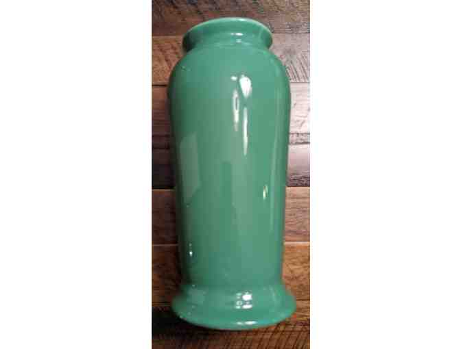 This years custom Fiesta item was introduced in 2002 and discontinued in 2007 the Monarch Vase. The 12 individually numbered vases are glazed in Meadow (2019 new color). Dimensins are 9-1/4" tall x 4-1/4" diameter with 2-1/4" hole in top. Bottom is stamped in Gold letters, "Made exclusively for East Liverpool High School Alumni Association 2022 Number 6 of 12". Condition is new with no visible flaws