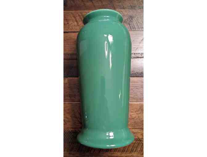 This years custom Fiesta item was introduced in 2002 and discontinued in 2007 the Monarch Vase. The 12 individually numbered vases are glazed in Meadow (2019 new color). Dimensins are 9-1/4" tall x 4-1/4" diameter with 2-1/4" hole in top. Bottom is stamped in Gold letters, "Made exclusively for East Liverpool High School Alumni Association 2022 Number 7 of 12". Condition is new with no visible flaws