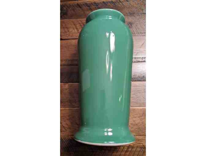 This years custom Fiesta item was introduced in 2002 and discontinued in 2007 the Monarch Vase. The 12 individually numbered vases are glazed in Meadow (2019 new color). Dimensins are 9-1/4" tall x 4-1/4" diameter with 2-1/4" hole in top. Bottom is stamped in Gold letters, "Made exclusively for East Liverpool High School Alumni Association 2022 Number 11 of 12". Condition is new with no visible flaws