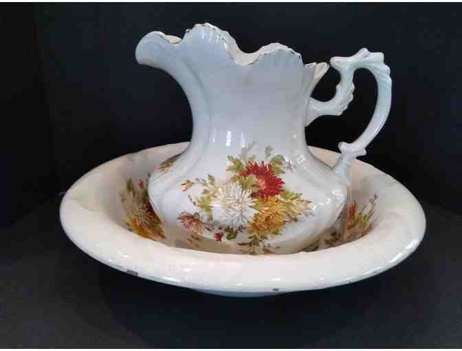 French China Company Large Pitcher & Bowl, Mum Pattern