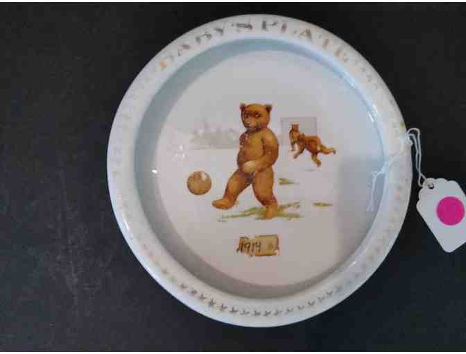 Harker Baby Plate, Bear Print, 1914, 7" diameter, 1.5" thick,